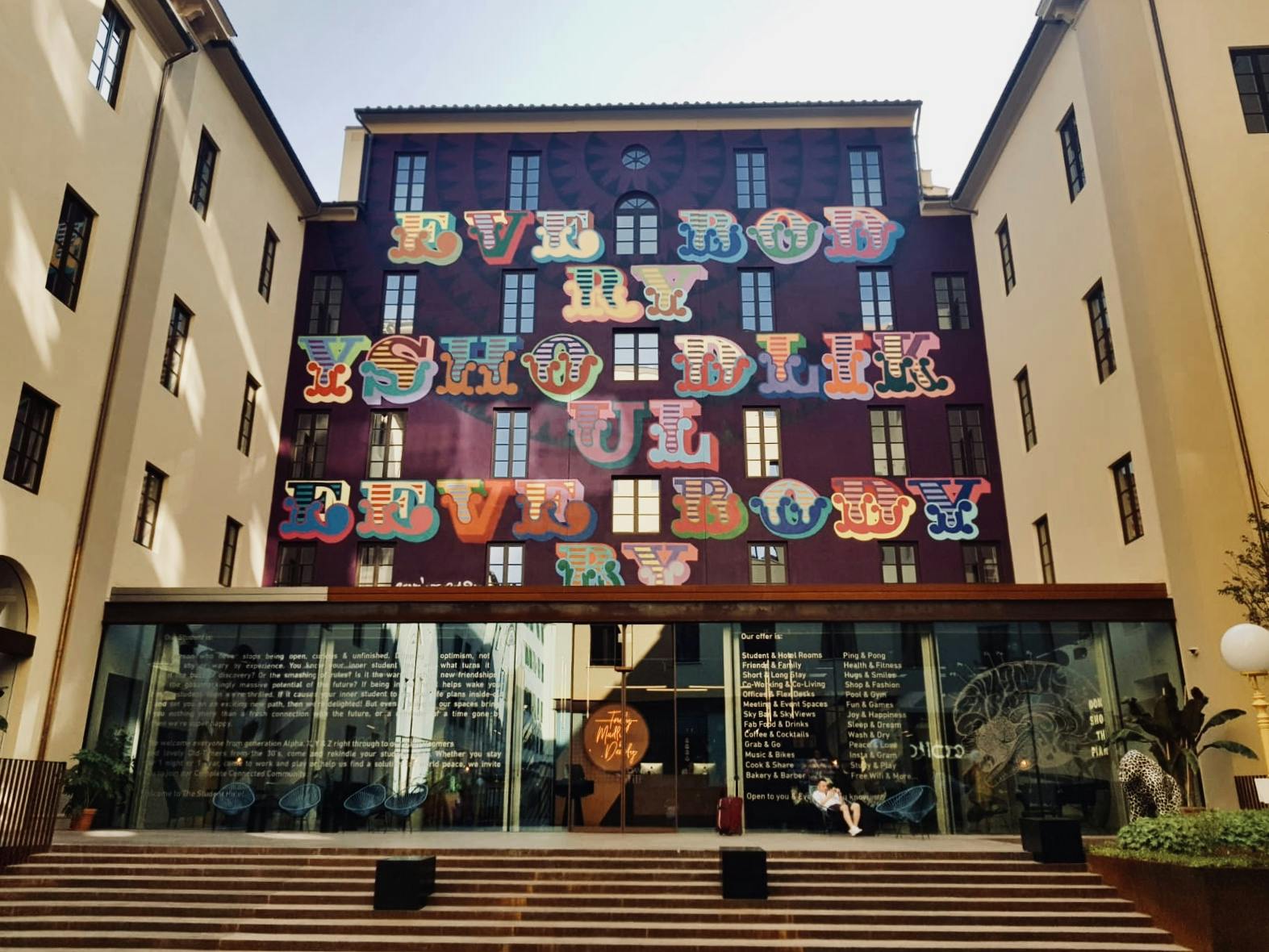 There's a vibrant courtyard and a rooftop pool with city views. Other amenities include a fitness center, conference facilities and parking, plus hip lounges, a library and a game room. Dining options include a sleek restaurant, a bistro and a bakery. There are also bike rentals.